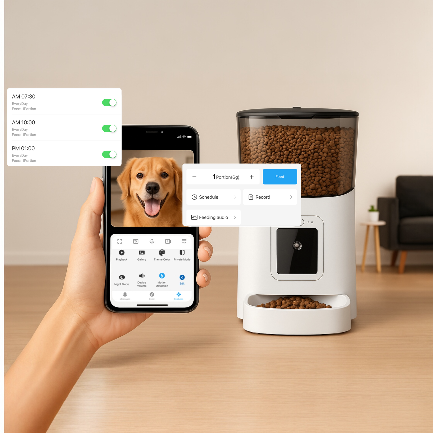 Schedule feeds, monitor live video in 1080 HD, and adjust portions instantly — ensuring your pet never misses a meal.