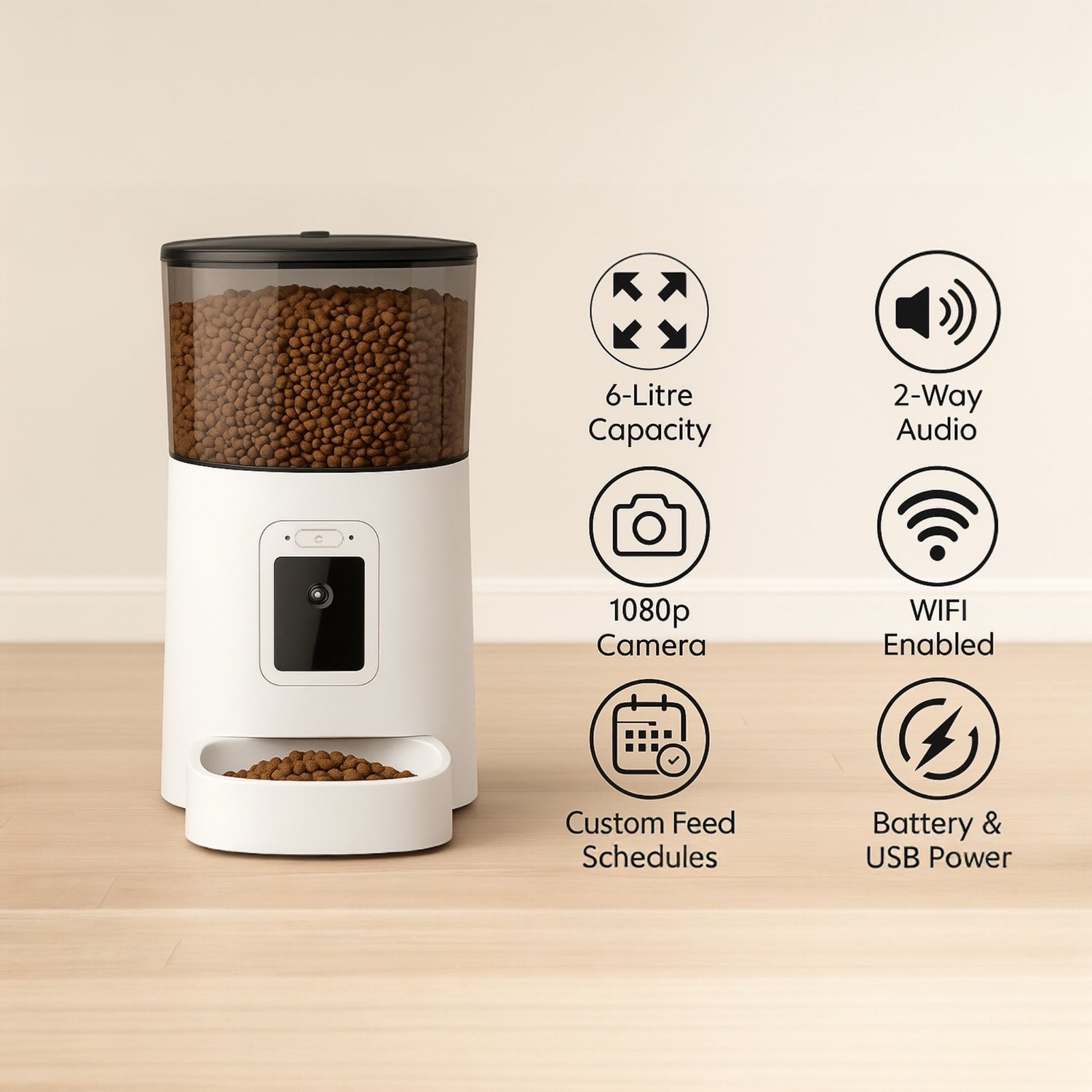 With real-time video, two-way audio, and app-controlled feeding, you can see your pet’s face, talk to them in your voice, and keep their meals perfectly on schedule — all from one simple app.